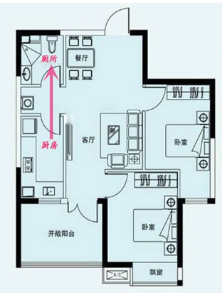 現代一些室內設計,廁所門與廚房門有時候會相對,形成兩氣相沖,造成家運不順,夫妻失和,健康不佳,這也是完全符合現代的醫學常識。