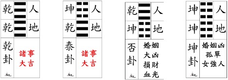 男主人為『乾』、女主人為『坤』,男主人乾離組合為『同人』卦,女主人坤離組合為『明夷』卦。
