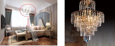 立體空間吊燈產生的煞氣往往被所忽略,吊燈的垂線對到床上,人躺在床上的相對應為置,就會產生不好的影響,尤其懷孕期間,若是對到肚子容易有流產的現象,水晶吊燈影響大,尤其是水滴狀的。