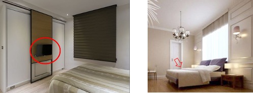 如上右圖除了床後是走道壁面還是鏤空,睡在床上肯定睡眠品質不佳,而且會有頭部疾病、腦神經衰弱。