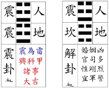 1. 正東邊(震):長男為震卦,組合成震震為『震』卦。