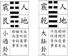 3. 東北邊(艮):長男為震卦,組合成震艮為『小過』卦。