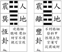 5. 東南邊(巽):長男為震卦,組合成震巽為『恆』卦。