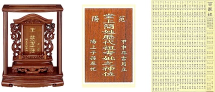 3. 內牌:紀錄歷代祖先之諱名、稱謂、生辰、忌日,按照輩分越近代越靠近面之總牌。