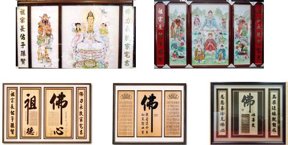 1. 式樣:有傳統繪製神像及福祿壽三仙,及新一代佛字心經及祖字萬壽字…等。