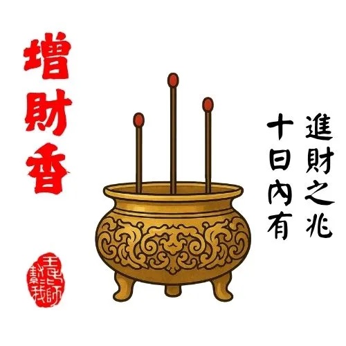 此香為財運將至之象,若近期有事難成、辦事受阻,可能需適度增加資源或資金投入,自會順利解決。若你正處順境,代表你所規劃之事方向正確,可大膽推進,後續有財喜可期。