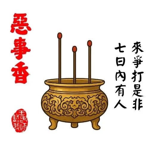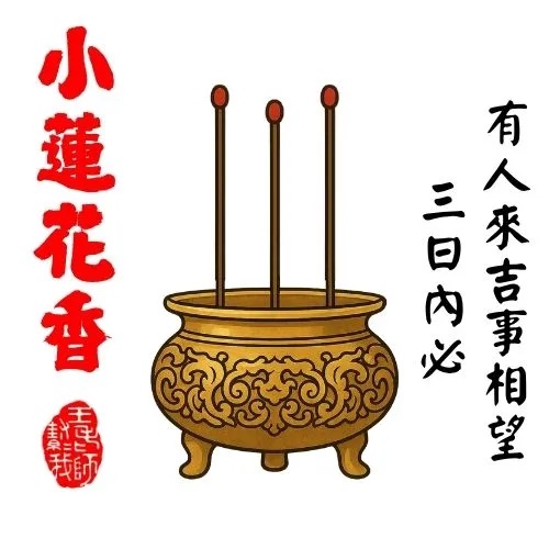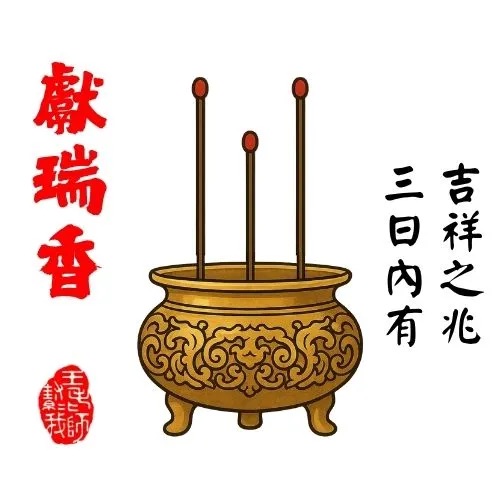 此香象徵將有善人來訪或助力相助,亦可能遇到需要幫助之人。是主動行善、廣結善緣的大好時機。