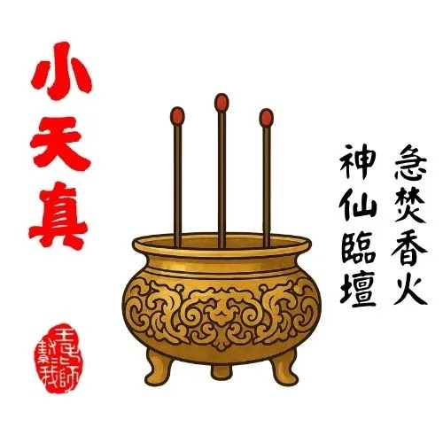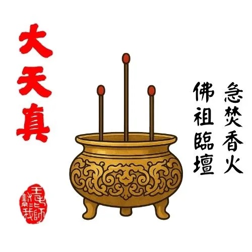 解釋: 天地神明臨壇,急焚香火。