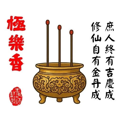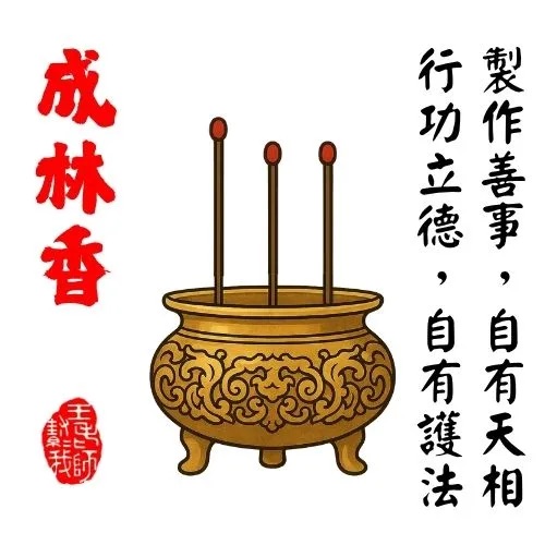 此香為對你修善的肯定。若能兼具慈悲心(功)與善行(德),將有神明庇佑。若僅偏一方,則需補足,才能無漏功德。