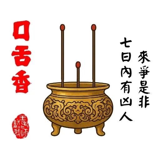 此香提醒你遠離八卦與口舌爭論,勿妄語或散播他人過錯。他人之言亦不宜盡信,謹慎應對、少語為安,以免捲入不必要的紛爭。