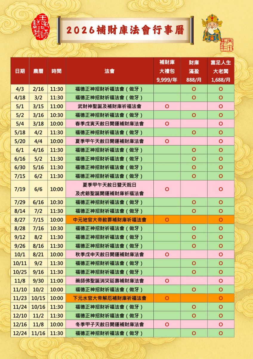 ❀2026補財庫開運法會大禮包 ☯︎王老師推薦!共12場補財庫法會《價值$11,988》
